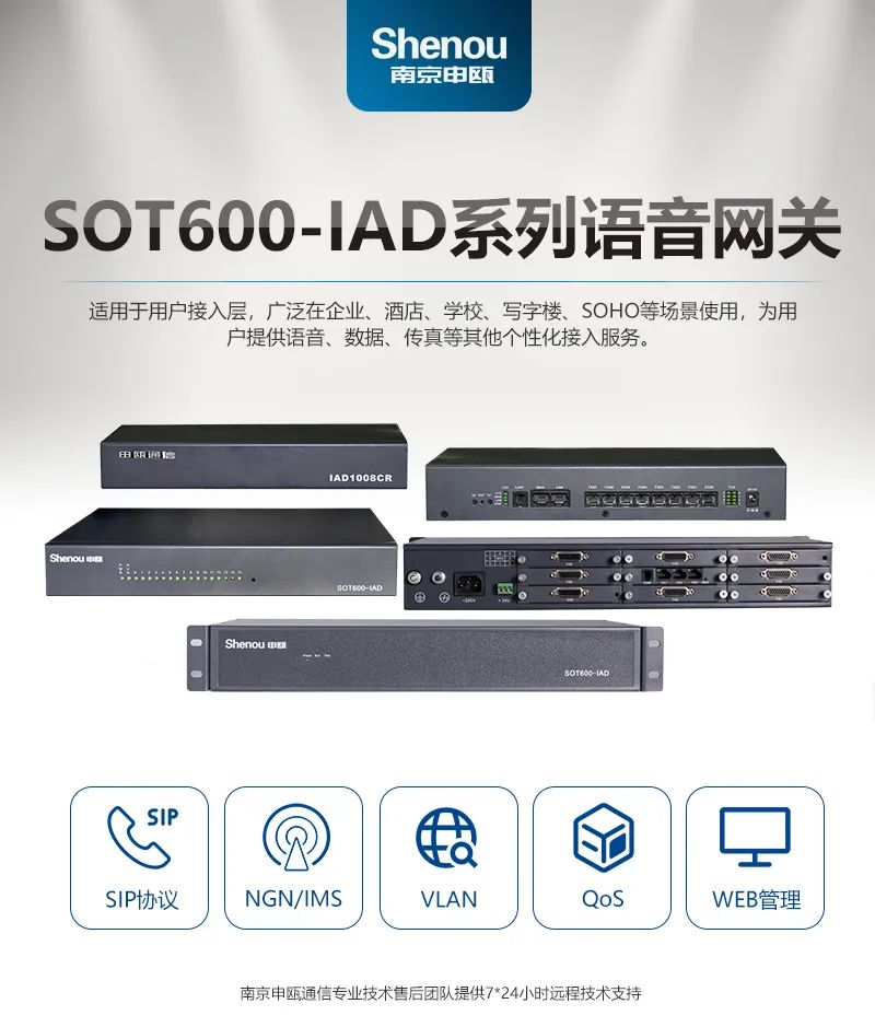 申甌通信SOT600系列IAD模擬語(yǔ)音網(wǎng)關(guān)可以實(shí)現(xiàn)和PSTN運(yùn)營(yíng)商落地支持,通過(guò)標(biāo)準(zhǔn)的語(yǔ)音接口,與傳統(tǒng)電話機(jī)、傳真和傳統(tǒng)模擬PBX連接,并提供語(yǔ)音服務(wù)。采用標(biāo)準(zhǔn)SIP協(xié)議,可與主流的IPPBX,IMS軟交換平臺(tái)和基于SIP的網(wǎng)絡(luò)平臺(tái)兼容,實(shí)現(xiàn)運(yùn)營(yíng)商和IPPBX之間的內(nèi)部呼出和外部呼入。