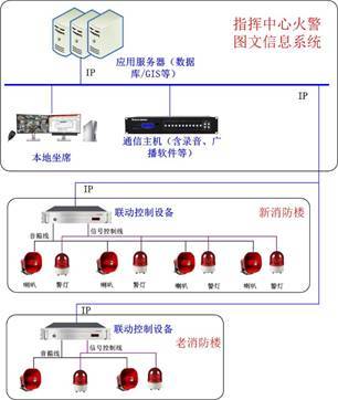 在消防樓號角喇叭及警燈。通信主機(jī)包含廣播軟件模塊,與新老消防樓的聯(lián)動控制設(shè)備通過IP方式對接,傳輸音頻、開關(guān)信號、控制信號等??梢绘I聯(lián)動開啟廣播及警鈴,并自動打印出警單,提醒消防站內(nèi)各區(qū)域的消防人員迅速出警,達(dá)到快速出警的目的。