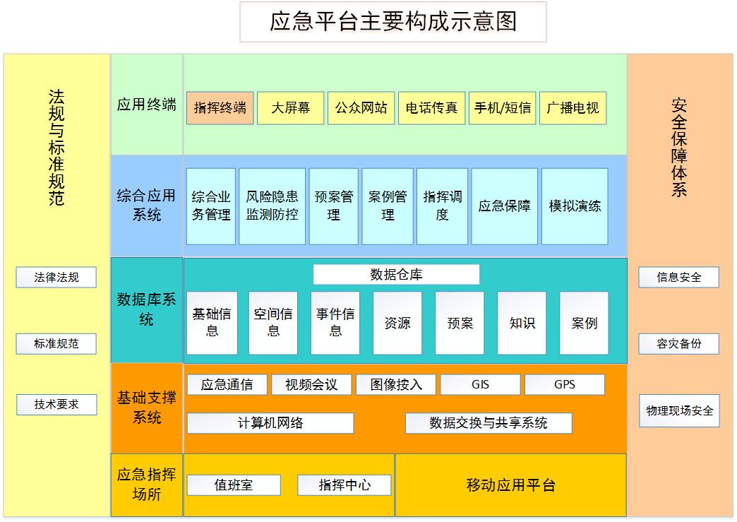 按照國務(wù)院關(guān)于應(yīng)急指揮平臺(tái)數(shù)據(jù)庫建設(shè)相關(guān)標(biāo)準(zhǔn)和應(yīng)用體系。應(yīng)急指揮平臺(tái)數(shù)據(jù)庫應(yīng)包括預(yù)案庫、專家?guī)?、基礎(chǔ)信息數(shù)據(jù)庫、地理信息數(shù)據(jù)庫、事件信息數(shù)據(jù)庫、案例庫、知識(shí)庫、模型庫、文檔庫等等。