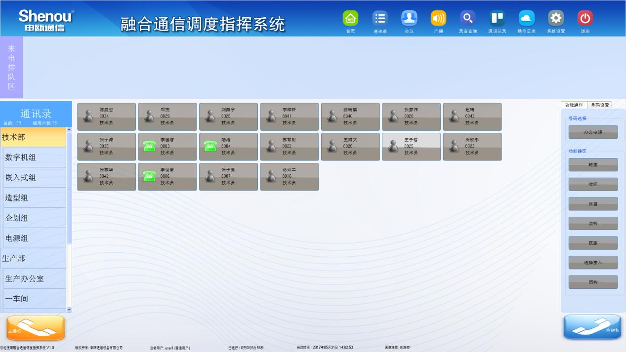 調(diào)度臺上的功能應(yīng)用快捷方便,一鍵調(diào)度,如電話會議、傳真、短信群發(fā)、免打擾、轉(zhuǎn)接、強插、強拆、熱線號碼、縮位號碼等功能。