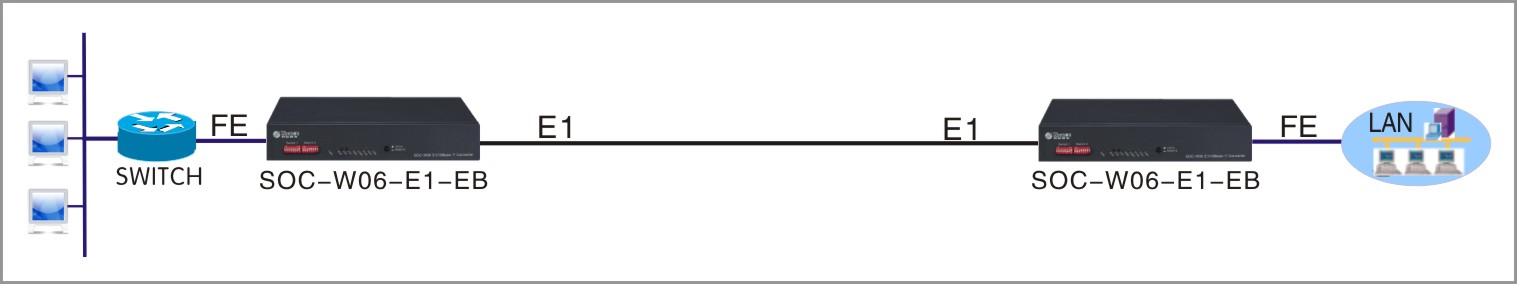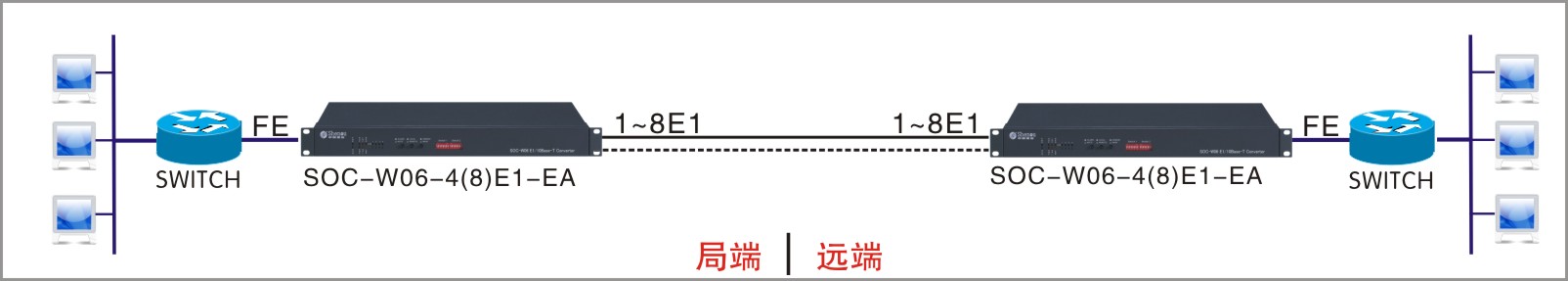 SOC-W06系列協(xié)議轉(zhuǎn)換器(又稱網(wǎng)橋)是利用E1線路作為鏈路傳輸,以太網(wǎng)數(shù)據(jù)下掛業(yè)務(wù)的通信設(shè)備??奢p松地通過(guò)廣域網(wǎng)實(shí)現(xiàn)兩個(gè)分離的局域網(wǎng)間的互連,方便地?cái)U(kuò)大了局域網(wǎng)的地域范圍;在遠(yuǎn)程組網(wǎng)、異地辦公室聯(lián)網(wǎng)、遠(yuǎn)程監(jiān)控等領(lǐng)域有著廣泛的應(yīng)用;并且構(gòu)