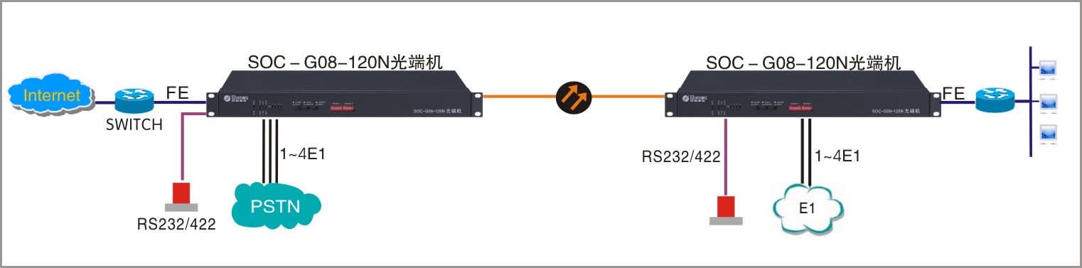 SOC-G08系列臺(tái)式多業(yè)務(wù)光端機(jī)是在原有光端機(jī)的基礎(chǔ)上進(jìn)行優(yōu)化設(shè)計(jì),主要提供4/8/16個(gè)E1,1至2路線速10/100M網(wǎng)口,1路異步數(shù)據(jù),4/8/16路語(yǔ)音,專為語(yǔ)音和數(shù)據(jù)接入及專網(wǎng)組網(wǎng)建設(shè)而開(kāi)發(fā)設(shè)計(jì)的綜合業(yè)務(wù)傳輸產(chǎn)品,還能附加上其它業(yè)務(wù),比如:2/4線音頻、磁石通道、E&M通道等.采用標(biāo)準(zhǔn)19英寸1U機(jī)箱,雙電源供電,滿足專網(wǎng)建設(shè)中2M、以太網(wǎng)、語(yǔ)音和異步數(shù)據(jù)等綜合業(yè)務(wù)的接入和傳輸。