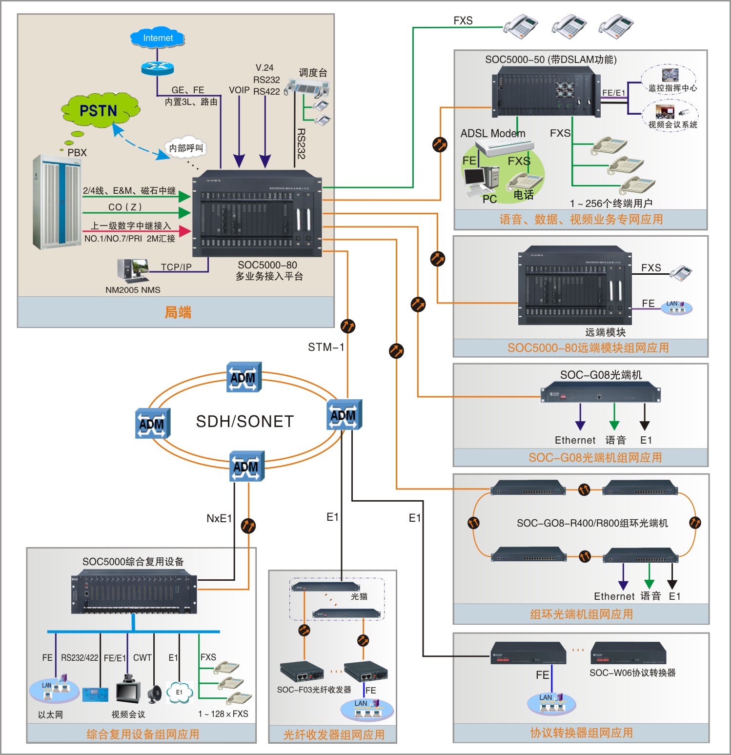 SOC5000-80多業(yè)務(wù)接入平臺(tái)(MSAP)是申甌通信設(shè)備有限公司設(shè)計(jì)的具有語音交換、光傳輸、PCM復(fù)用、信令匯接、64Kb交叉、2M交叉、2M匯聚、以太網(wǎng)匯聚等多種技術(shù)于一體的功能強(qiáng)大的多業(yè)務(wù)接入平臺(tái),實(shí)現(xiàn)語音、數(shù)據(jù)、圖像(壓縮和非壓縮)的交換、匯聚與傳輸。根據(jù)不同組網(wǎng)的要求靈活搭建,從而滿足客戶專網(wǎng)業(yè)務(wù)需求。通過納入SOC-NM2005綜合網(wǎng)管平臺(tái),支持局端和遠(yuǎn)端設(shè)備的統(tǒng)一監(jiān)控和管理;實(shí)現(xiàn)多級(jí)網(wǎng)管、遠(yuǎn)程管理;對(duì)網(wǎng)絡(luò)實(shí)行集中操作、維護(hù)和管理(OAM)功能,實(shí)現(xiàn)電路的配置和調(diào)度。操作簡(jiǎn)單易用,提高網(wǎng)絡(luò)運(yùn)維效率,降低網(wǎng)建運(yùn)維成本。